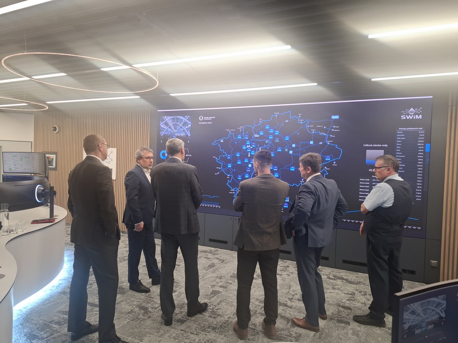 Generální ředitel společnosti Petr Mrkos mu představil zbrusu nový dispečink SWiM NG (Smart Water integrated Management – new generation), který řídí vodohospodářskou infrastrukturu v hlavním městě.