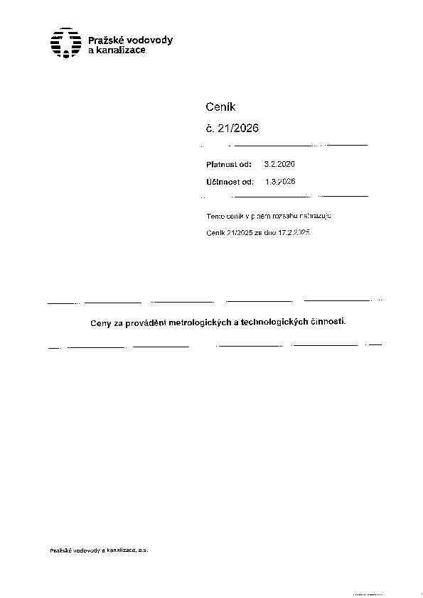 Ceník 21 Ceny za provádění metrologických a technologických činností,
