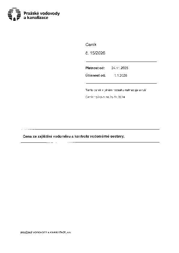 Ceník č. 15 Cena za zajištění vodoměru a kontrolu vodoměrné sestavy