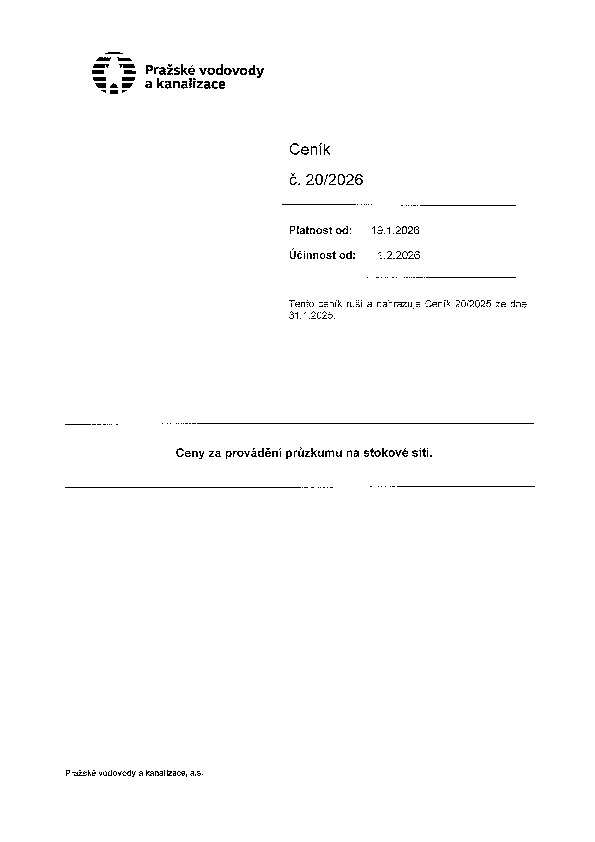 Ceník 20 Ceny za provádění průzkumu na stokové síti, průzkum stokové sítě, průzkum na stokové sítí, stoková síť